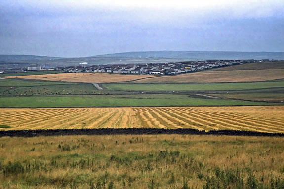 Very flat countryside along the northern coast looking across Gills Bay towards Duncansby Head.