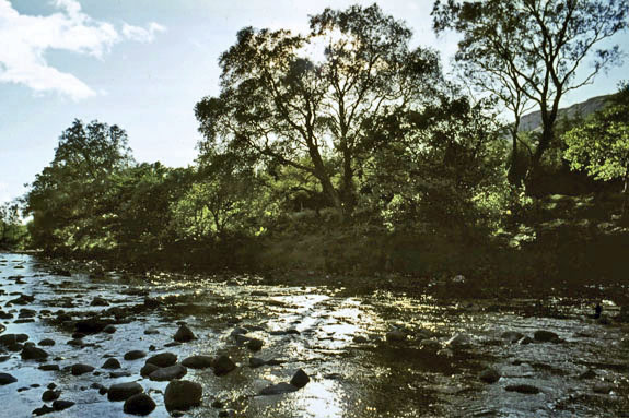 A wide valley just beyond Bridge of Orchy with Beinn a Chaisteal. The railway can be seen cutting across the hillsides.
